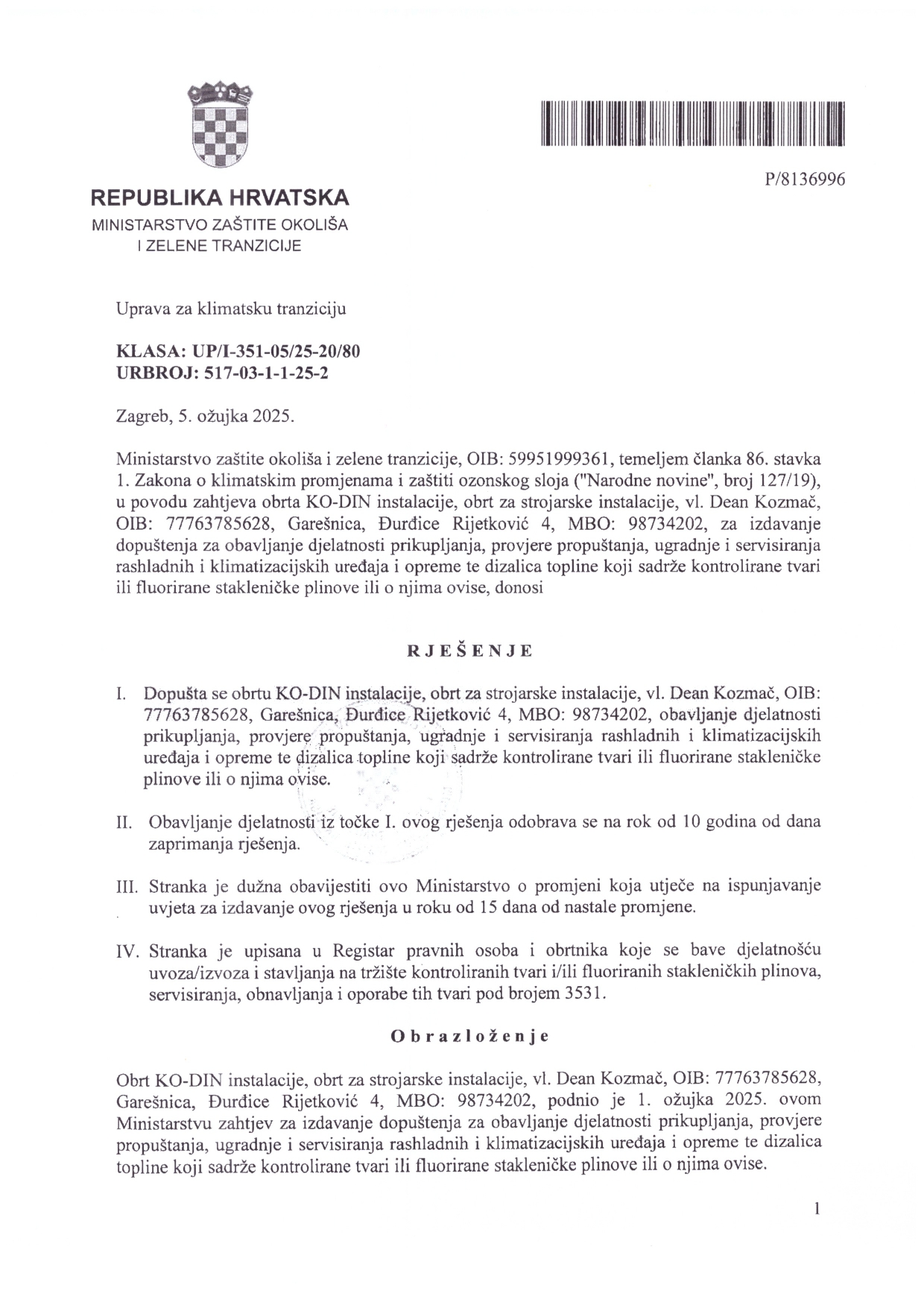 PotvrđenoObrtni registar2024Rješenje Ministarstva zaštite okolisa i zelene tranzicije